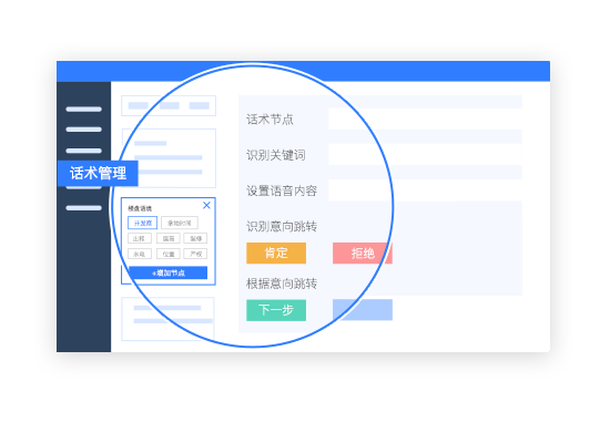 可视化竹简法话术配置,可实现话术在线配置,自由跳转,所见即所得,2-4小时轻松完成上线;